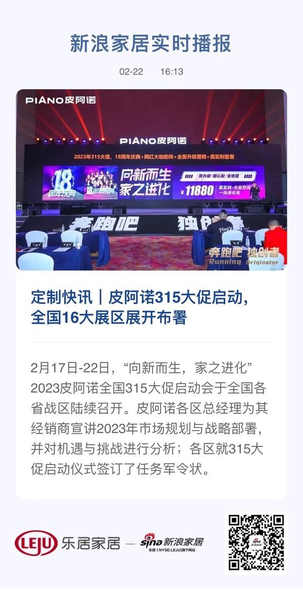 定制快讯|皮阿诺315大促启动,全国16大展区展开布署
