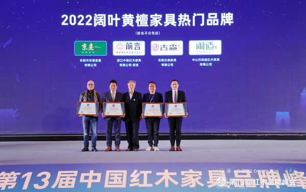 古森红木荣获“2022红木家具十大受欢迎品牌”(左五)