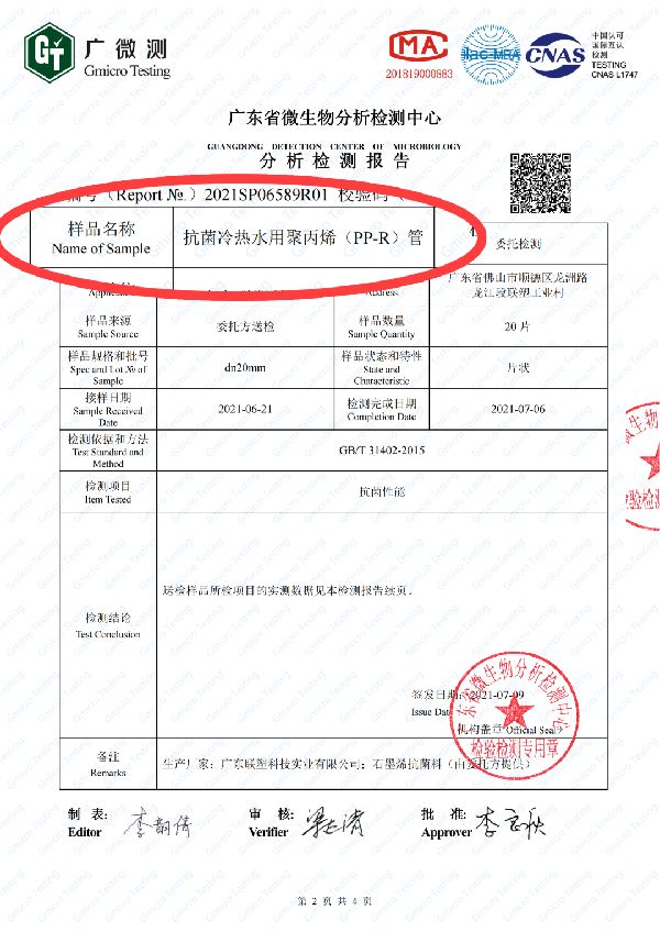 联塑纳米系列抗菌管是在PP-R管的基础上改进,它不仅具有PP-R管材的特性,而且具有显著的抗菌效果,管材采用高科技抗菌材料纳米银离子,经国家权威机构检测表明,对大肠杆菌、金黄色葡萄球菌及鼠伤寒沙门氏菌抗菌率达90%以上,有效抑制细菌、藻类滋生!