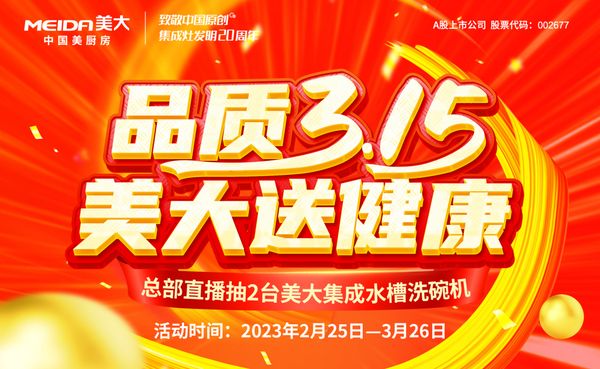 品质生活季,诚信守万家,315消费者权益日即将到来,为厨房美好生活践行承诺保障,“品质3.15,美大送健康”品牌促销活动,全国千城万店即刻火热启动,品质美厨房,变频来创造,超值重磅福利诚意来袭。