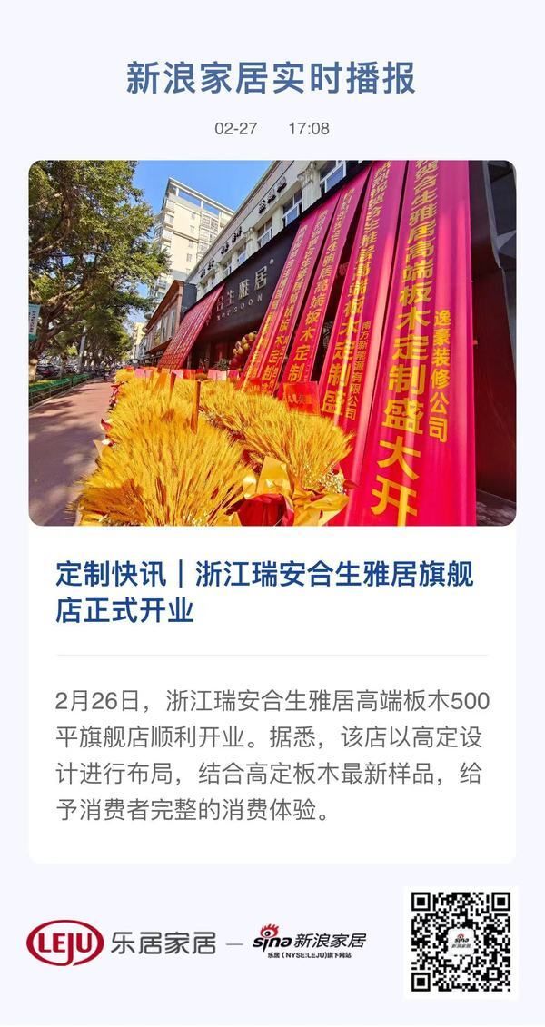 定制快讯|浙江瑞安合生雅居旗舰店正式开业