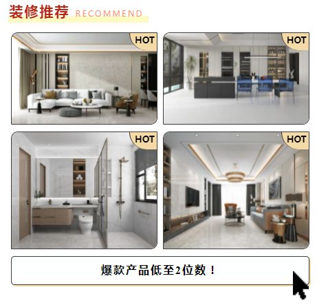 优惠二:5988元全屋瓷砖特惠套餐(共包括70㎡瓷砖:30㎡客餐厅750*1500mm,卫生间厨房400*800mm各20㎡)