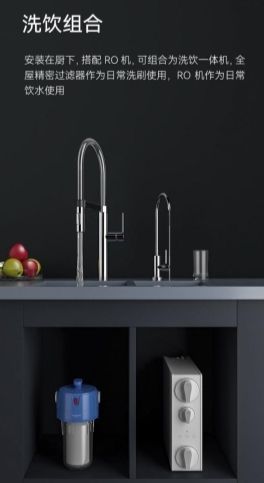 然而厨房用水的各类问题逐渐显现:RO机虽然能保障直饮水的健康,却无法满足清洗果蔬、冲洗厨具以及烹饪过程中的大流量用水需求。