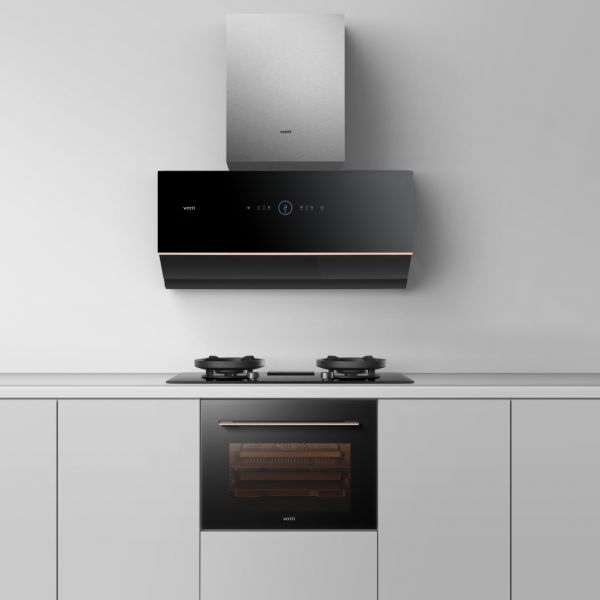 以华帝集成烹饪中心V1为例,其由近拢吸橱柜烟机J6059 和ZF901两款实力产品组成,通过产品高效集成设计和不同功能间的协调配合,在一平米的占用面积集成了油烟机、灶具、蒸箱、烤箱、空气炸锅、隔水炖盅、保温饭盒七大功能,不仅能蒸能烤能爆炒,在视觉空间上也更加整洁有序,全方位满足家庭对理想厨房生活的需求。