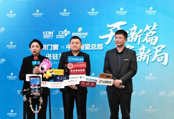 签约仪式后,中国陶瓷产业总部基地总经理汤洁明、红橡树门窗总经理黄以光和营销中心总监李驰平接受了媒体采访。