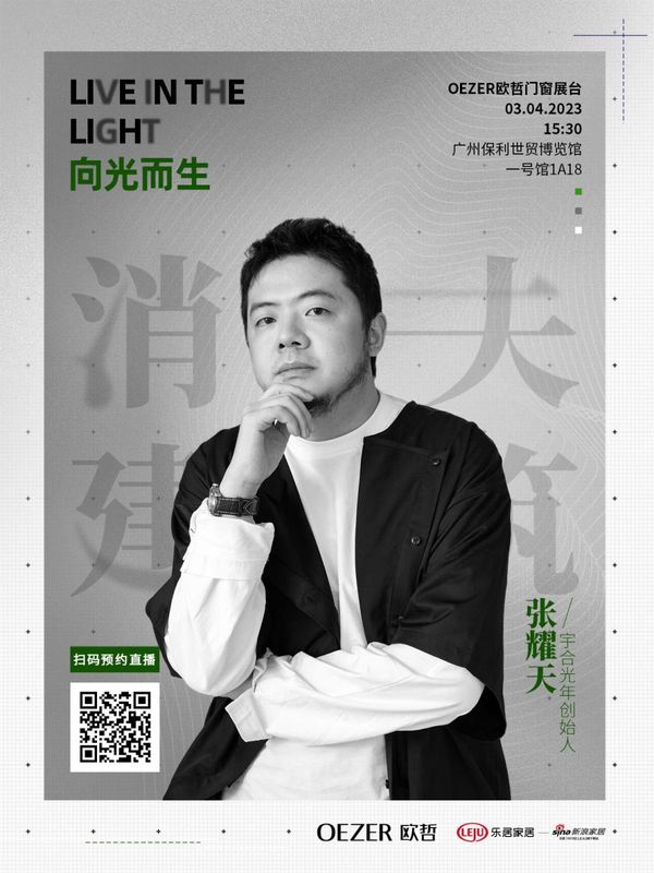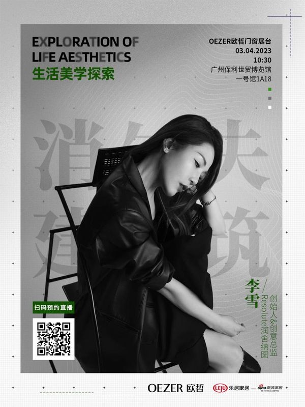 3月4日,新浪家居还与OEZER欧哲门窗独家策划了两场设计师分享活动。上午,Resolute润舍纳图创始人&创意总监李雪将以《生活美学探索》为主题,在设计艺术中寻求生活美学。下午,宇合光年创始人张耀天《向光而生 》的人生艺术,也将带来一场艺术与生活相融的精彩分享。