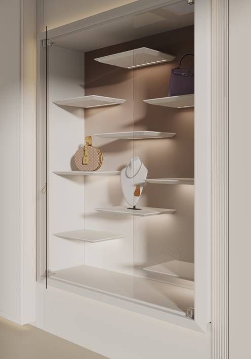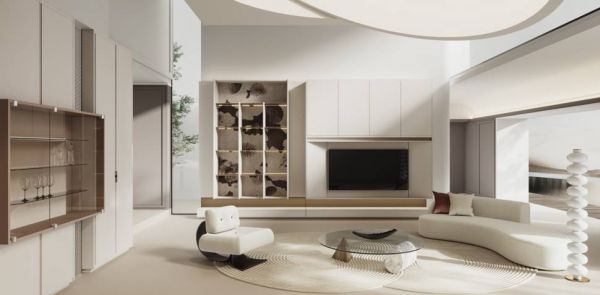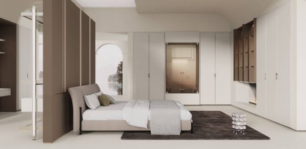 Roberto Zimmile在产品造型风格设计上,继续延续着与“花火”印花一致的设计理念,从轻古典风格出发,既融合了奢品世家百年沉淀的韵味,又不失现代生活的明快利落,使产品造型虽充满设计感,但在视觉上却没有喧宾夺主,与印花图案也相得益彰,从门型、衣柜展示架、开放柜到微造型护墙隔断,每一个家居细节都体现着极具亲和力的精致新贵美学。