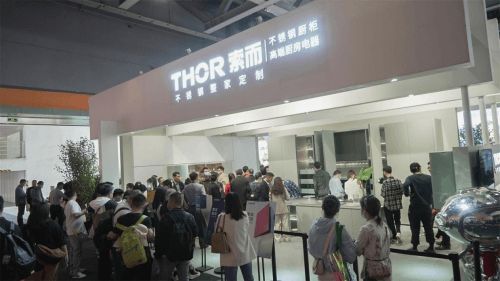 THOR张总:THOR是创立于美国的国际品牌,在过去20年间于美国、欧洲等国家地区服务了近200万中高端家庭,一直致力于专业厨房领域,曾被著名杂志《TWICE》年度最具影响力的十大品牌之一。近几年,THOR以更高的品质标准携不锈钢全屋定制回归中国市场,引入欧美的健康生活理念,采用食品级304不锈钢材质和国际化的产品设计,经过美国专业实验室的检验认证,以世界品质打造中国厨房,为千万精英家庭提供更舒适的生活方式。本次参加设计周,除了进一步扩大品牌影响力外,也是为了让设计师和加盟商们看到THOR索而的巨大潜力,增进交流合作的机会。今天有非常多新老朋友们来到现场,也有不少已经表达了合作意向的,期待接下来几天有更多朋友来我们展位感受、体验。