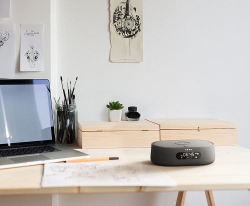 与普通音箱不同,harman/kardon CITATION OASIS是一款集无线充电器、FM蓝牙音箱、闹钟功能及智能交互于一体的床头多功能音箱。无线充电上,只需将带有Qi技术的手机放置在音箱的无线充电板上即可轻松充电,同时也设计了单独的USB端口以支持为其它设备充电。在电台播放功能上,harman/kardon CITATION OASIS机身上设置了四个便捷的预设按钮,轻触即可播放专属FM电台,满足家居生活的多样需求。