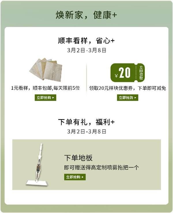 3月4日(20:00)-3月8日,“软”地板、硬实力,传递新能量!