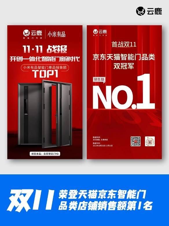 在这场一年一度备受关注的品牌大考中,云鹿在新品上市半年后,凭借着过硬的产品力和各渠道推广,荣登天猫京东智能门品类店铺销售额第1名,智能门单品Y2获得小米有品单品销售额冠军,成为了多数消费者智能防盗门的首选品牌。