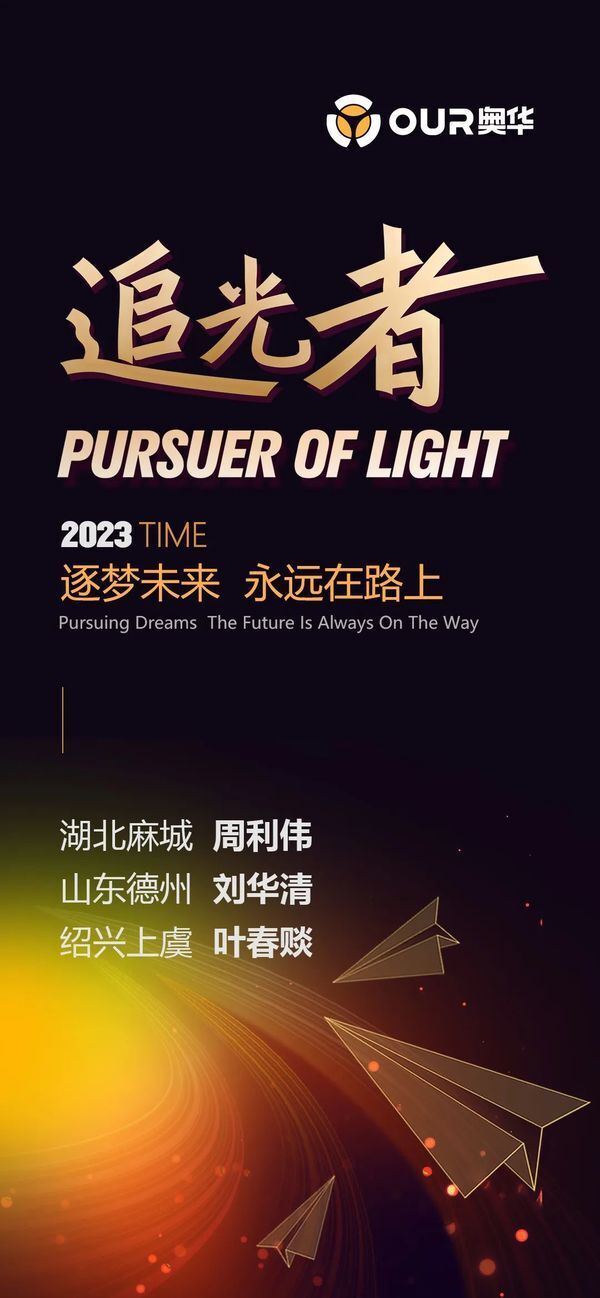 2023年,奥华推出《追光者》评选活动,每期将评选出若干位优秀的经销商,并对评选出的追光者们进行颁奖以及系列采访报道。通过与优秀的奥华经销商们面对面交流,听他们讲述新时代下创业者的奋斗故事,树立行业榜样与风向标,传播行业正能量。
