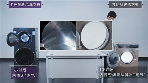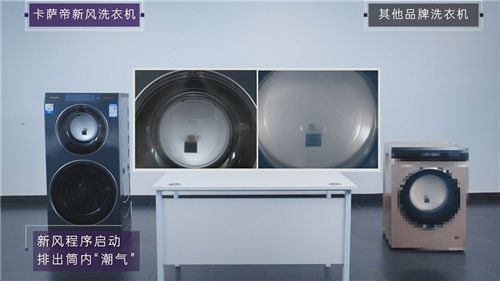 3月6日,卡萨帝官方平台发布了一则卡萨帝“新风洗衣机”和普通洗衣机的对比视频。视频中,普通洗衣机洗完衣物后,内筒始终密闭,筒内“潮气”积聚无法排出。而卡萨帝发明的“新风洗衣机”,通过创新内外循环深呼吸系统,可以持续向筒内注入新鲜空气,排出筒内“潮气”。同时,洗衣机搭载AI智慧抖散技术、360°环形送风技术等创新科技,不仅可以有效避免衣物产生褶皱,还能有效的防止衣物潮湿滋生细菌异味。