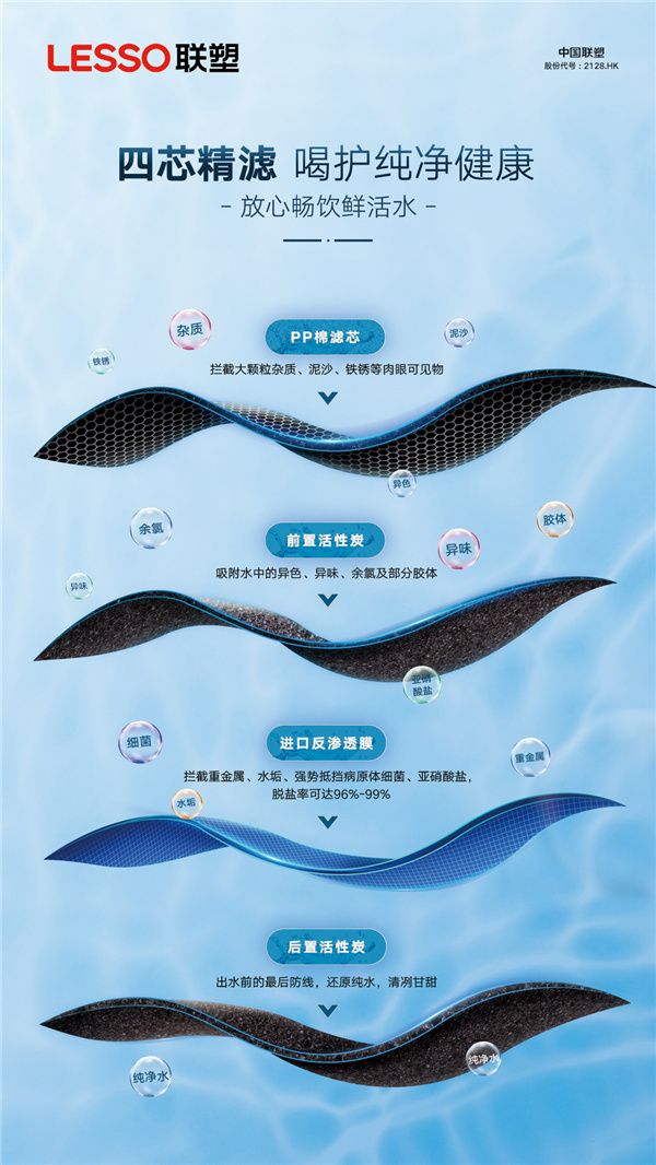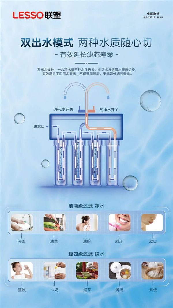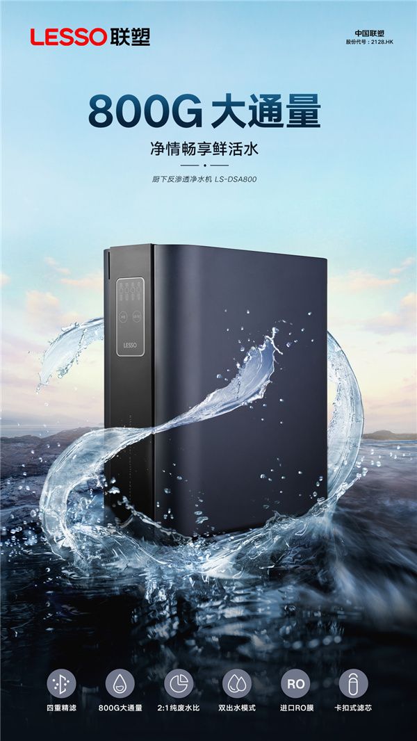 联塑反渗透净水机,多重净化技术,大通量出水快,过滤精度达0.0001微米级,让水瞬间鲜活,帮你轻松get健康好水。