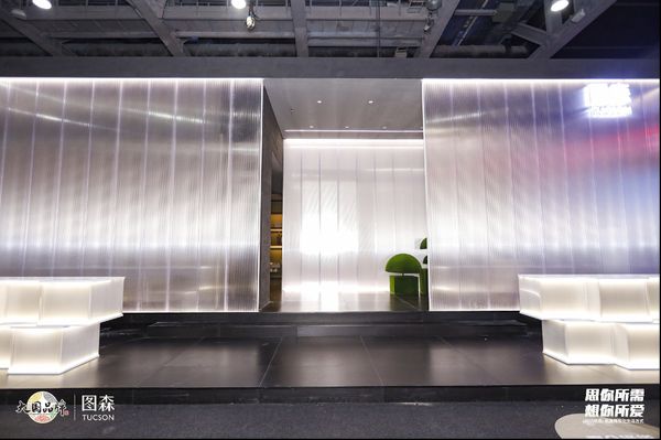 如果说“收纳”是本次图森为消费者构建精致生活的卖点之一,那“绿色”就是图森万变不离其宗而始终贯彻的生活理念。其整个展区以取自橄榄绿为灵感的“和平演变”经典色彩为主调,以新型节能环保型板材“聚碳酸酯板”构建展馆主体,就像为绿色植被的外围添了一层清晨的薄雾。