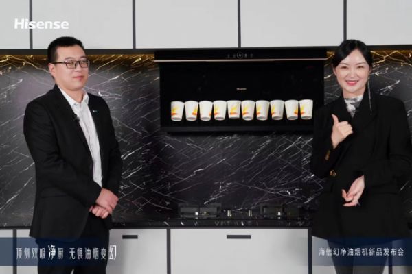 发布会上,海信中国区营销总部电商部总经理张存强和海信厨卫电商部总经理王凯为新品启动了揭幕仪式,王凯发表了关于海信厨卫打造智能化产品的理念和有关幻净新品的致辞。他提到,海信烟机始终想用户所需,以创新技术为动力,致力于产品焕新,打造智慧厨居生活。此次发布的幻净系列烟机,将为用户带来全新的愉悦烹饪体验,开创无烟厨居新范式。