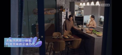 如果有细心的观众,应该注意到边亮家采用开放式厨房,虽然面积不大,却井井有条,付心童招待朋友时很快就能做好满满一桌菜。这离不开老板电器的“神助攻”。老板电器是电视剧《打开生活的正确方式》的厨电独家合作品牌,也是剧中角色烹饪各种美食的秘诀之一,边亮家的厨房中,老板蒸烤炸一体机尤其惹人注意,许多网友追剧过程中,不由自主开始搜索“蒸烤一体机排名”、“蒸烤一体机值得入手吗”等问题。
