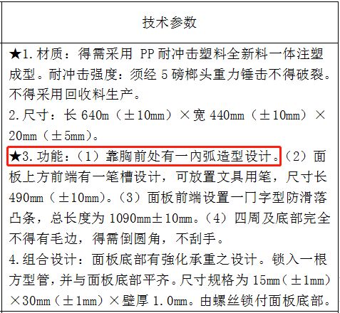 越来越多的家长及学校也认识到了弧边桌的重要性,纷纷把直边桌变成弧边桌,在学校公开的校桌椅招标文件中,我们也看到“带弧边桌的学习桌”成为主流,而且是成为强制性要求。