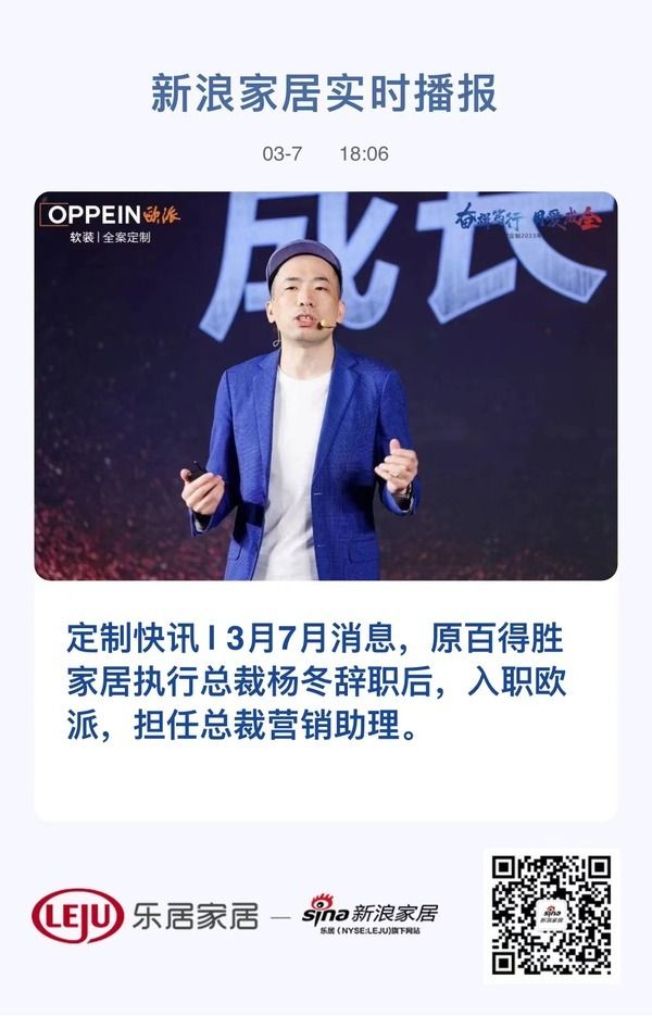 定制快讯 | 原百得胜家居执行总裁杨冬辞职后,入职欧派,担任总裁营销助理