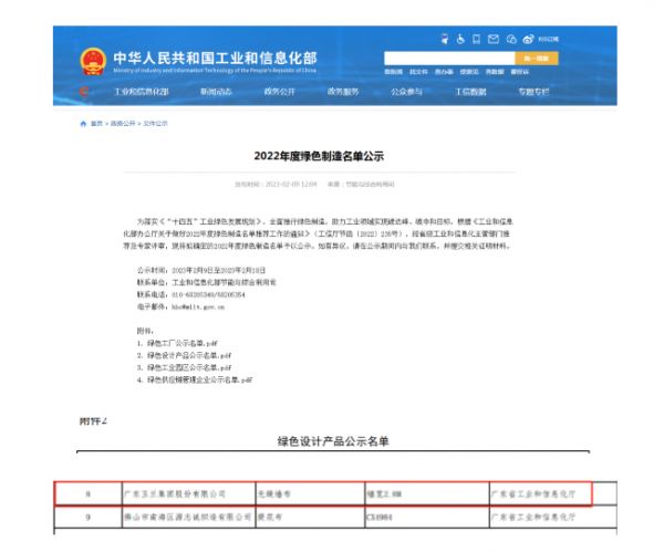 2月9日,工信部发布《2022年度绿色制造名单公示》,经广东省工业和信息化厅评审推荐及国家工信部专家评审,广东玉兰集团股份有限公司的无缝墙布产品荣获绿色设计产品认定。