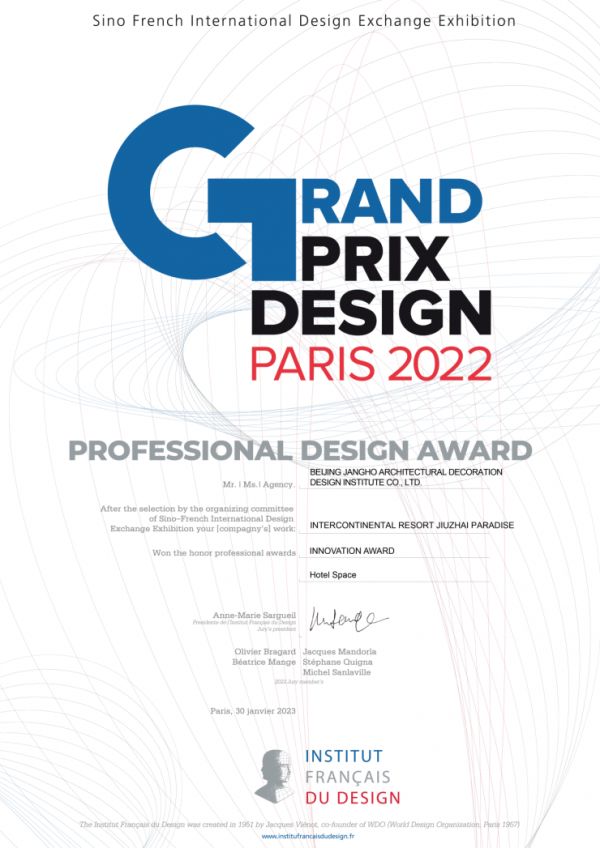 江河设计JHD荣获2022 FRENCH GPDP AWARD国际设计大奖 酒店创新奖