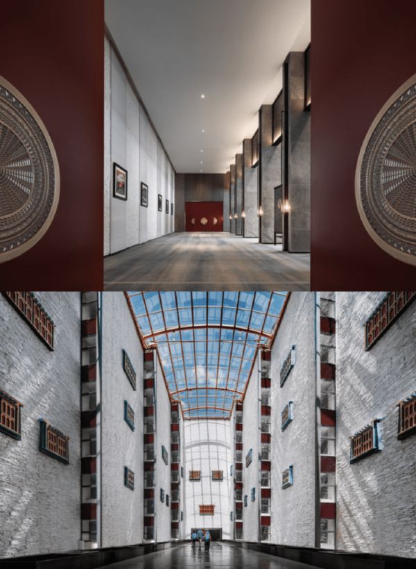 灵感来源于舞台剧《藏谜》的朝圣片段,江河设计JHD打造出一条酒店内的朝圣路线,从客房中庭到宴会走廊、到宴会前厅,最终到宴会厅,会依次看到神秘的藏式建筑,通过迷人宴会走廊走到圣殿(宴会前厅),最终遇见圣山(宴会厅)。