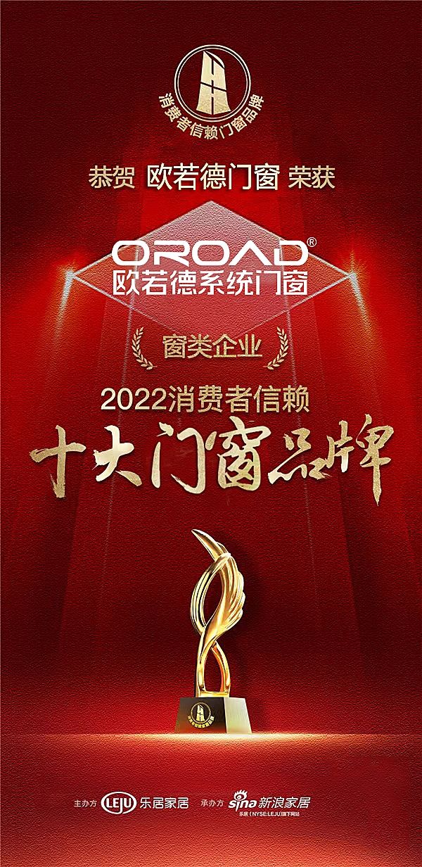 2022中国消费者信赖十大门窗品牌获奖名单(排名不分先后):新豪轩门窗、歌德利智能门窗、皇派门窗、若派门窗、欧若德门窗、奢庭门窗、欧哲门窗、德技优品门窗、希米洛门窗、轩尼斯门窗。