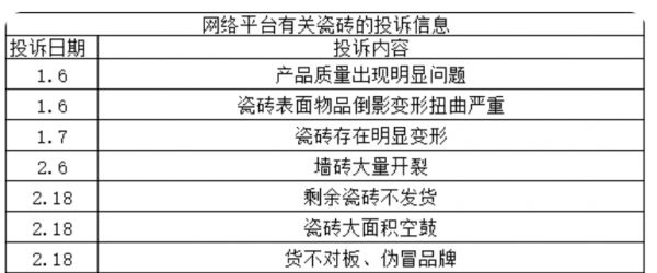 据不完全统计,今年以来,全国多地市场监管部门通报不合格陶瓷砖产品超过20批次,发现的质量问题大多是吸水率、断裂模数项目不合格。此外,今年以来在黑猫投诉平台上出现超过8起瓷砖相关投诉,内容大多是瓷砖质量不过关,其中有不少投诉的是知名品牌,可见即使是陶瓷行业的大品牌,其品控也不尽如人意。