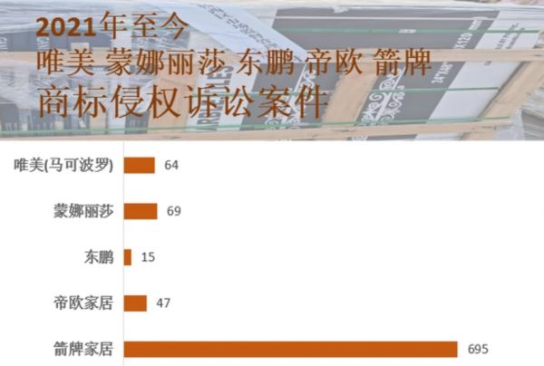 一直以来,陶瓷行业的头部品牌在消费群体中具有相当高的知名度,一些不法商家为了牟利,生产、销售侵权假冒的建筑卫生陶瓷产品,严重扰乱了正常的市场秩序。据相关媒体报道,2021年至今,马可波罗、蒙娜丽莎、东鹏、帝欧、箭牌5家陶企关于商标侵权、专利侵权的诉讼案件就超过了890宗。其中,仅箭牌家居一家企业就有695宗。