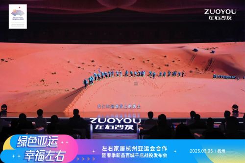 2023年3月5日,左右家居杭州亚运会合作暨春季新品百城千店战役发布会于杭州洲际酒店圆满落幕。发布会上,左右家居正式官宣成为杭州 亚运会官方供应商,左右沙发成为杭州亚运会官方指定沙发。会上更有左右品牌幸福大使杨澜女士、 杭州亚运会“宣传形象大使”/奥运蛙泳冠军/左右家居产品体验馆罗雪娟现场助阵 。