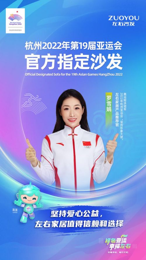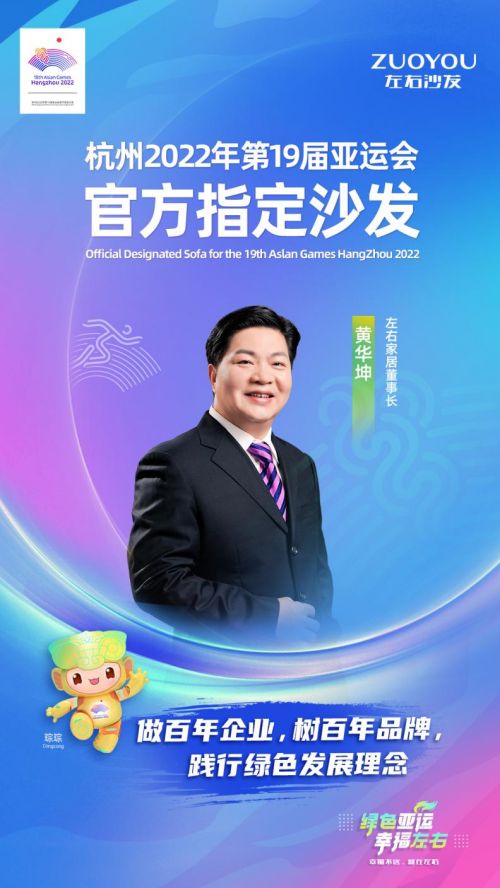 能够成为杭州亚运会官方供应商,是因为左右家居自创立以来专注沙发制造,秉持“以工匠精神缔造绿色优品”的品牌理念,与杭州2022年第19届亚运会所重视的“绿色、智能、节俭、文明”办会理念深度契合。