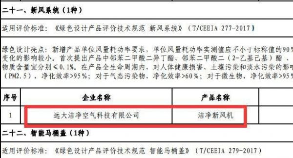 由于技术全面领先,产品功能卓越同时节能环保,远大空气成为GB/T34012-2017《通风系统用空气净化装置》国家标准参编单位,十二五、十三五国家室内空气污染课题唯一合作单位。入选工业和信息化部官网公布的第四批绿色制造名单,获得工信部首个新风系统“中国绿色产品”。