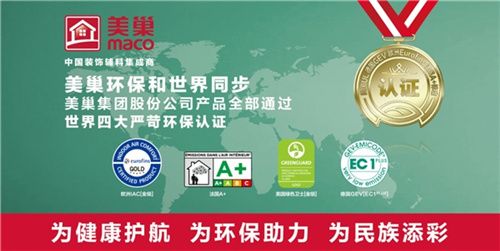 在可持续发展进程中,美巢对社会责任和企业使命的坚守是其绿色生产的支点与依据。为了从源头确保产品的绿色环保品质,美巢坚持严格选材,跟随健康、环保发展趋势,坚守“美巢环保和世界同步”的环保理念,旗下产品全部通过了世界四大严苛环保认证:美国UL GREENGUARD绿色卫士[金级]认证、德国GEV EMICODE EC1PLUS认证、欧洲欧陆IAC金级认证、法国French A+级标准。