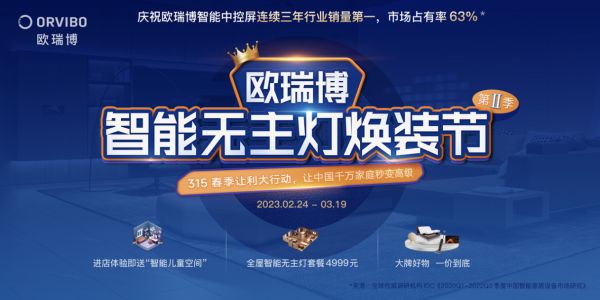欧瑞博同时宣布启动“智能无主灯焕装节第二季”活动,推出四套智能照明方案——包括实用畅销智能无主灯套餐、超薄防眩智能无主灯套餐、超薄防眩智能无主灯套餐升级版和深度调光智能无主灯套餐。3月24日之前,用户可通过欧瑞博全国1400多家线下全屋智能体验店了解和参与活动,到店体验获赠限量“智能儿童房”。
