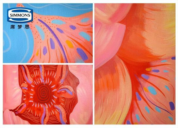 谈及本次跨界合作,杨婉表示:“通过自然去映射‘人’的活动和情绪是我非常关注的命题之一;而在手法上,我一直在探索如何以生命力顷刻之间的恣意姿态击中观者的心。就如同Simmons®席梦思一直致力于创造一个全然放松的睡眠情景、以好眠唤醒精彩生活,绘画的过程对我来说也是如此。向自己内心叩寻希望与出口的过程,就如同让一朵花从我的脑海里绽放到画布上,这朵花鲜妍的姿态也好、娇美的色彩也好,它即是我被春天唤醒所获得的最鲜活的灵感,同时承载了我希望让更多观者感知到的喷涌而出的新生力量。”