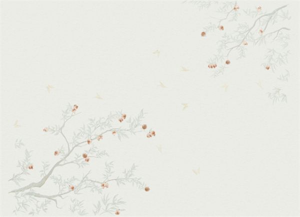 绿叶沙沙作响,燃起一片闪亮的果实,灿若烟霞,绚烂之极。石榴树是富贵、吉祥、繁荣的象征。精致的刺绣工艺使平坦的墙面有了生机盎然的画面。