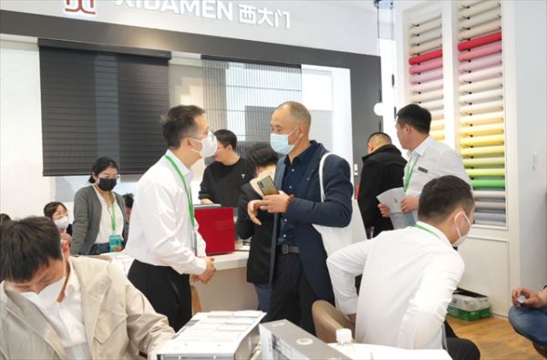 【陆芳】:大家也看到了,我们展位人流量很大,一直进进出出,而且是几近饱和的状态,所以大家也能看出经济真的是在慢慢恢复。民众消费态度的改变我也明显看出来了,比如说客户不再问最低价,也不执着问价格,而是问可以提供的产品和服务。我们西大门本次展会主打一个是品质,还有一个就是服务。作为上市公司,对于品质这一块的把控相当严,我们为此设置了客诉机制;面料这块,以前是质检两道关,现在面料质检升级到四道关;我们在全国都有驻点,并安排了自己的驻点服务人员,收到面料后还会加一道检验,最大限度保障消费者利益。服务方面,客户安装好以后,总部会进行回访。双剑合璧,可以推动我们西大门品牌在C端市场的快速传播。