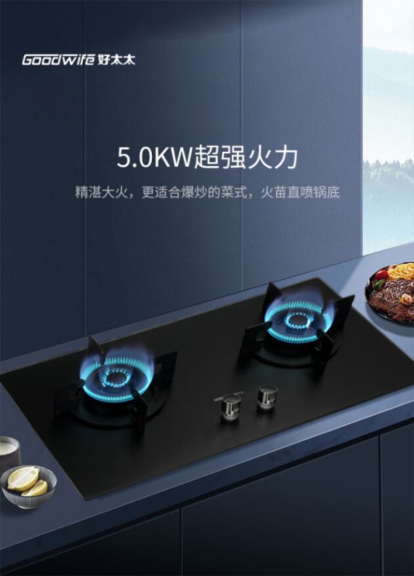 给大家推荐Goodwife好太太九腔鸳鸯猛火灶,拥有5.0KW超强火力,精湛大火,更适合爆炒的菜式,火苗直喷锅底,火力达到全方位覆盖,快速加热食材,缩短烹饪时间,还能更牢牢地锁住水分和营养流失;小火也能稳当当,聚热高效,焰火稳固不飘火,除了爆炒、油炸,也能轻松hold住煮粥、煲汤。