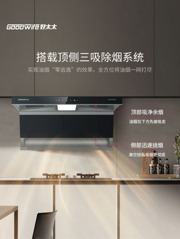 要烟火气,不要油烟,推荐Goodwife好太太懒人烟机。36叠全封电机+大直径风轮,强劲转速,恒定持久大吸力,吸拢效果大升级,油烟升起的那一刻即刻暴走无压力;还可以轻松突破烟阻,强势排烟不倒灌,让厨房油烟更快更高效地排放出去。没有油烟的洁净厨房,让美食烹饪的每一时刻,也变得更加轻松愉悦,尽享厨房乐趣。