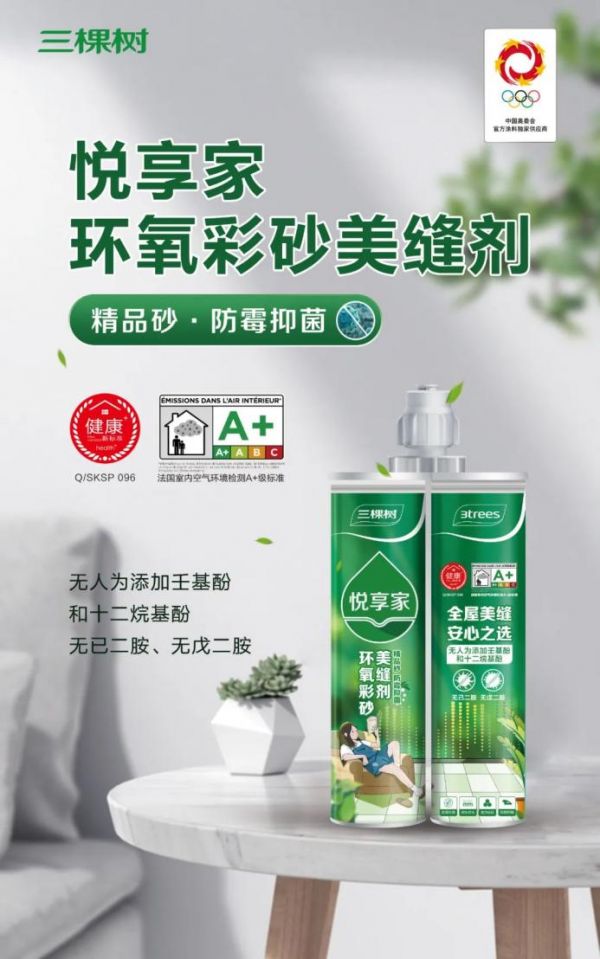 三棵树新品彩砂美缝剂,为您装点品质生活,净化家居环境,呵护家人健康。