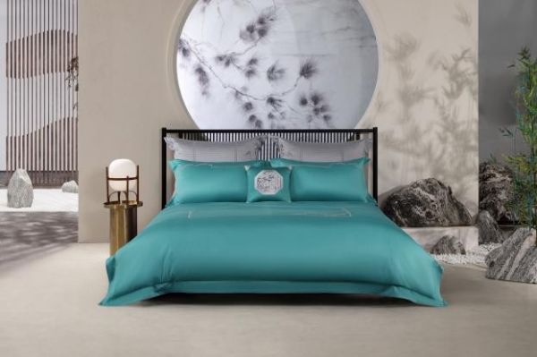 水星家纺这一款竹韵江南可以说是四季常备款,100S长绒棉四件套,厚薄适中的设计,亲肤柔软,手感细腻丝滑。其中所蕴含的新中式古典风格的刺绣,瞬间就让整个四件套的江南意蕴得到了提升,唯美东方元素注入到设计中,传统与新意的融合,为东方新中式家纺美学注入了新的灵魂。