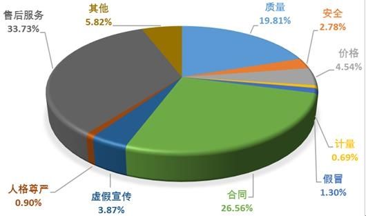 不久前,中国消费者协会(以下简称:“中消协”)权威披露了2022全国消协组织受理投诉情况。其中,售后服务问题占33.73%,合同问题占26.56%,质量问题占19.81%,价格问题占4.54%,虚假宣传问题占3.87%,安全问题占2.78%,假冒问题占1.30%,人格尊严问题占0.90%,计量问题占0.69%,其他问题占5.82%。