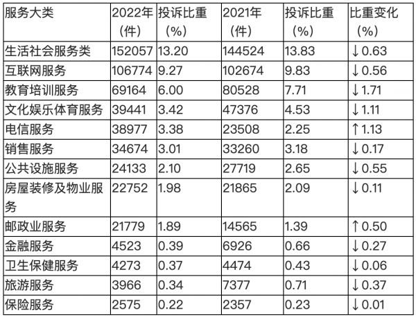 与2021年相比,售后服务问题投诉比重上升较高,合同与虚假宣传问题投诉比重有所下降,其余类投诉变化幅度较小。