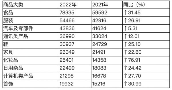 在具体商品投诉量变化中,家具投诉量位居第六,前五名分别为食品、服装、汽车及零部件、通讯类产品、鞋。其中,2022年家具投诉量,相比2021年的21491件上升到了26349件,同比增长22.60%。