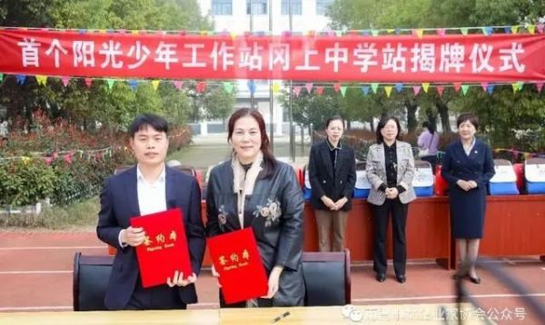 冈上镇人民政府党组成员、副镇长樊佳春致欢迎词并对工作站的建成表示祝贺!南昌市女企业家协会和南昌县冈上中学就“阳光少年工作站冈上中学分站”签署协议