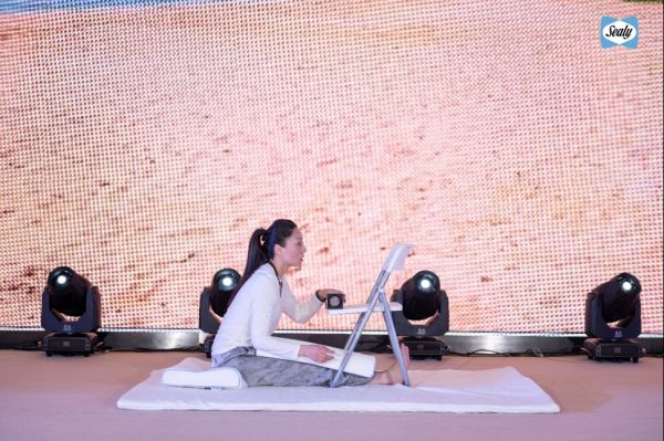 (图片说明:2023丝涟中国睡感报告现场颜意娜教授分享睡前瑜伽放松动作)