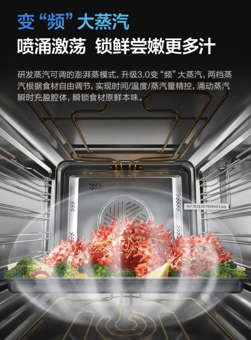 在确保使用安全之余,老板不生汽系列蒸烤炸一体机也提供了全面且成熟的烹饪体验。如研发蒸汽可调的澎湃蒸模式,升级为3.0变“频”大蒸汽,只要一首歌的时间就能轻松完成一道菜。目前绝大多数的蒸烤炸一体机,蒸虾的时间普遍需要花费10-15分钟,老板不生汽系列蒸烤炸一体机只需要3分钟。然而除了能自如掌控蒸汽外,它更拥有满配的烹饪性能。采用2000r/min的双转速高速风机,高于行业普遍使用的1500r/min,强势掀起超强高温循环热风,逼出食物内部油脂,兼顾酥脆口感与健康减脂。控温科技搭载中式配件珐琅焖炖锅,真正实现一键操作免看管。EXP模式上下独立控温,烤管温差可以达到20℃,烘焙爱好者在家也能做出媲美甜品店的美味西点;即使对温度要求精细的披萨,也能烤出上层松软、下层焦脆的双重口感。蒸烤炸自由组合,无论先蒸后烤还是先烤后蒸皆能一键完成,自动切换,让你轻松享受美味。