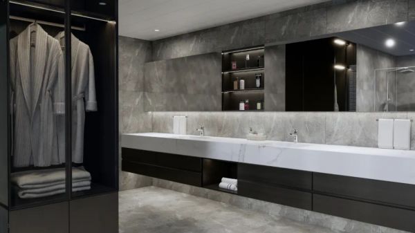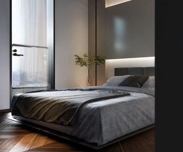 光线是影响室内环境的重要因素,也能影响居者的情绪和心境。世贸公馆以大面积的高级灰作为主色调,辅以莫兰迪色系,为整个项目空间塑造出和谐、精致、宁静的氛围。在家具的选择上,设计团队秉承和谐统一的原则,使其配色能够与周围环境相融,消除割裂感和隔阂感。