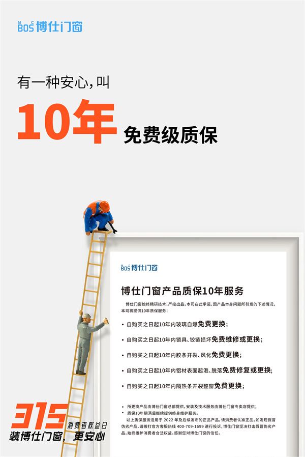 质量够硬,才敢承诺10年免费级质保,确保业主售后无忧。10年质保期满后,博仕还将继续提供终身维护服务。