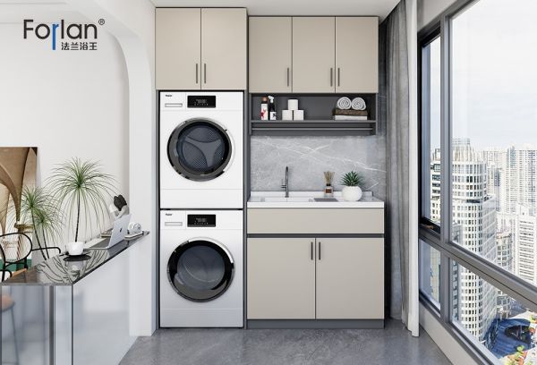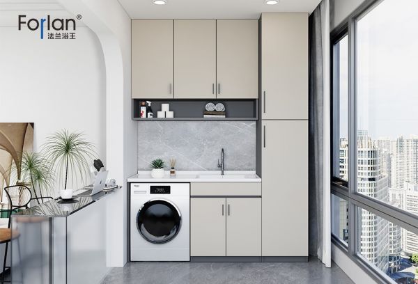 考虑到每个人的实际需求和审美品位不一样,Forlan法兰浴王高端阳台柜可以根据装修现场和用户需求最大化利用阳台空间:如底部放置洗衣机,顶部做吊柜,可以增加不少收纳空间,平时用到的一些晾衣架、洗衣粉和清洁工具等都可以放在柜子里。